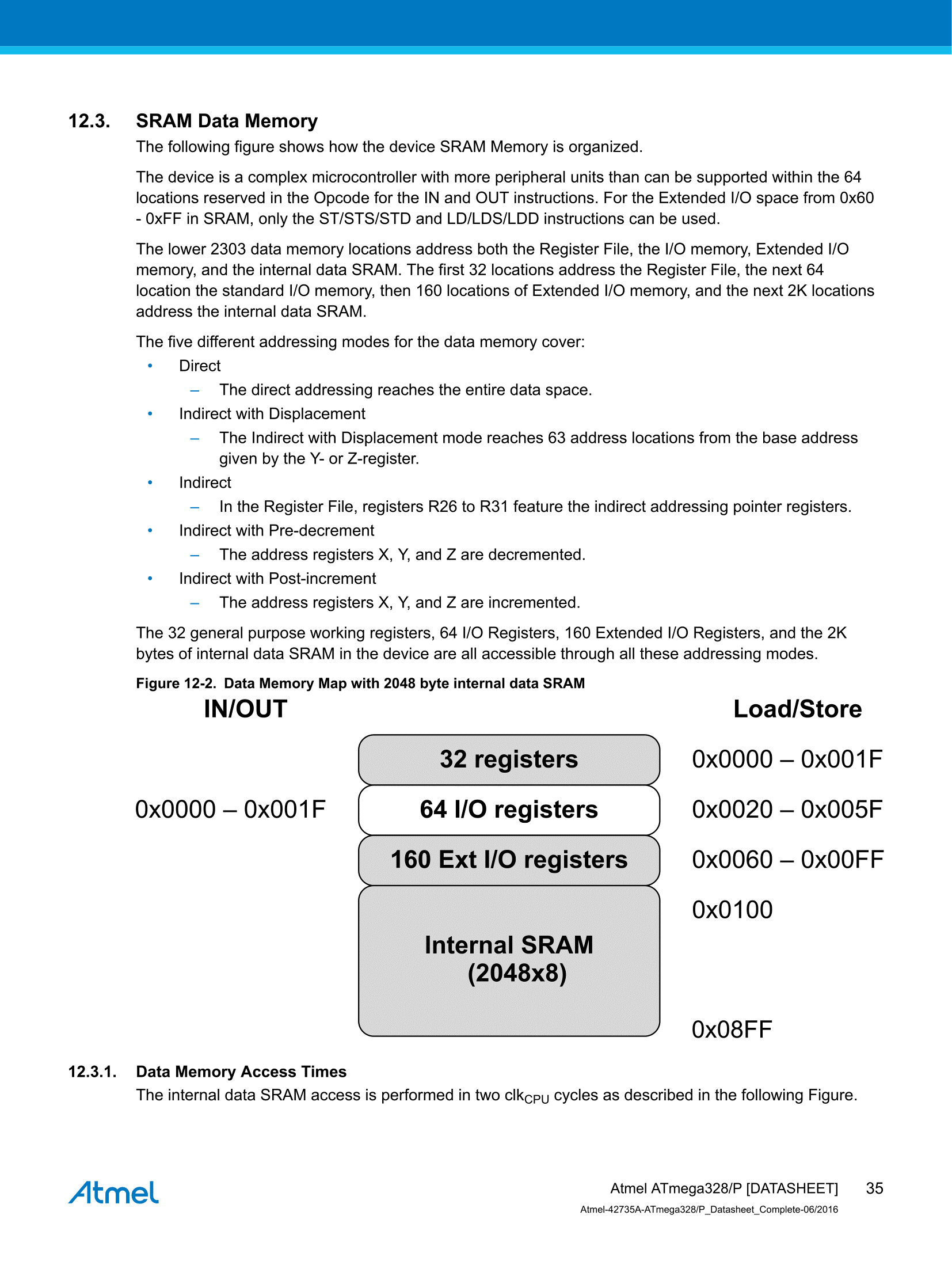 如圖為Atmega328P的記憶體分佈圖。